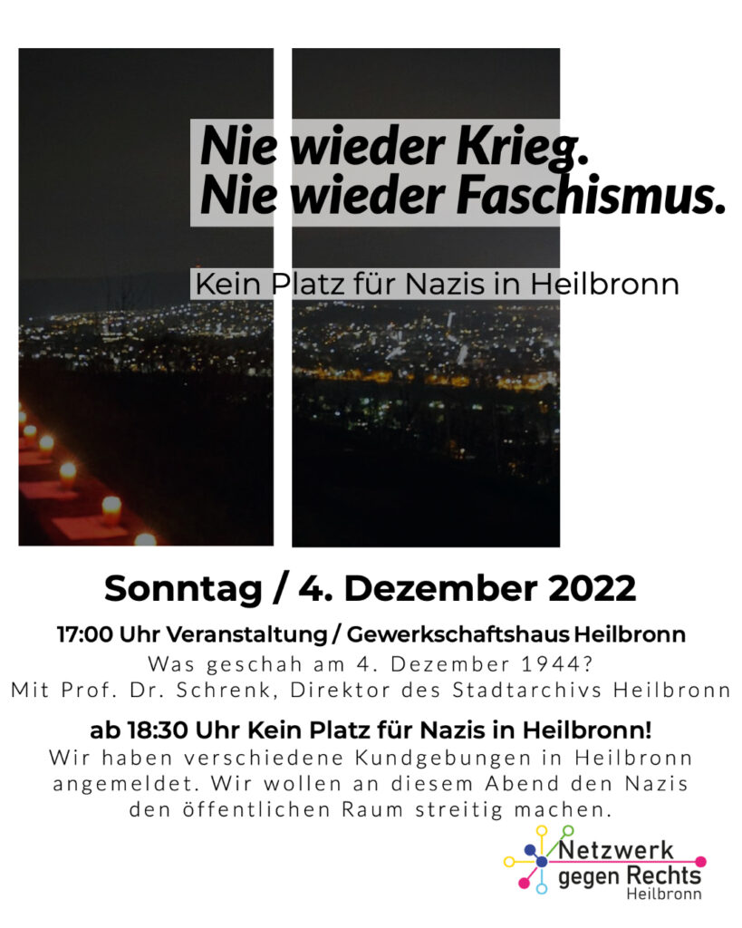 Auf die Straße gegen die Nazi- Fackelmannwache in Heilbronn! Am Mittwoch, den 4. Dezember 2024, jährt sich zum…